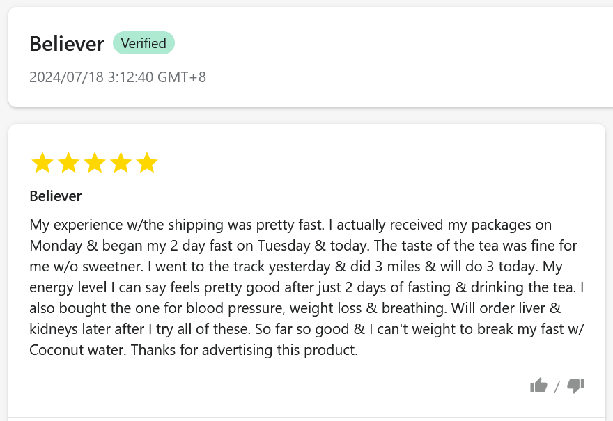 🍵 Fasting Tea Support (Complete Bundle only) — Ships within 24 hours, arrives in 3–5 days to support your body through every fast